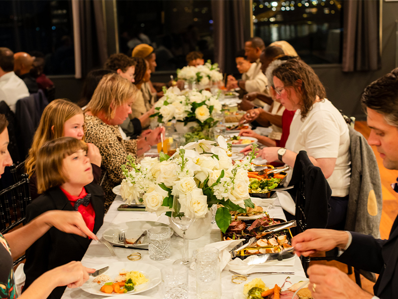 Before dessert, the couple is invited to pause for one intentional moment — a candle lit, a note read aloud, or a question answered together.